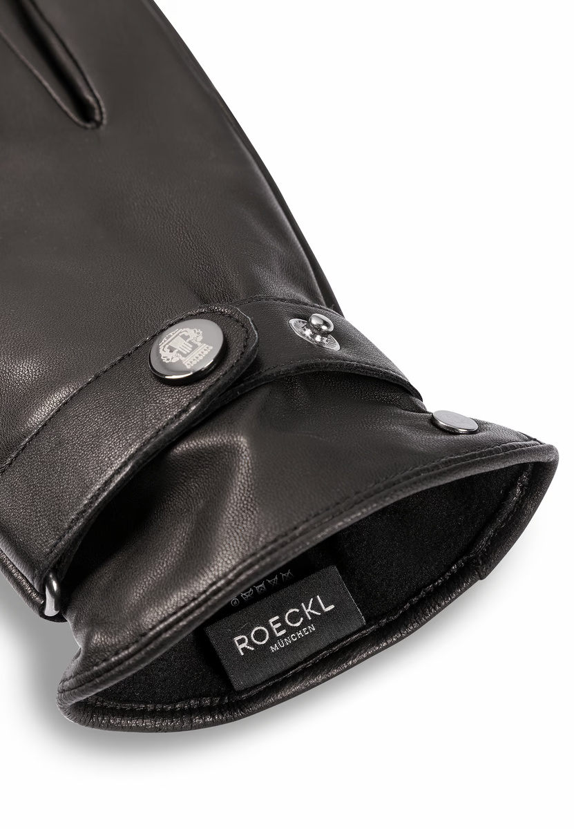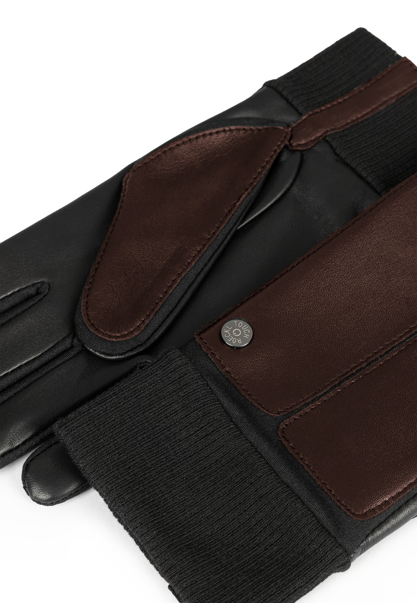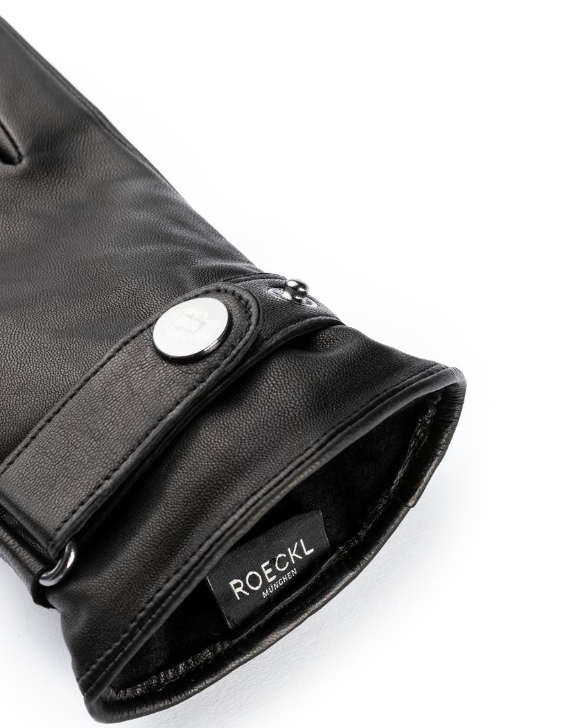 Melni ādas cimdi ar regulējamām aprocēm