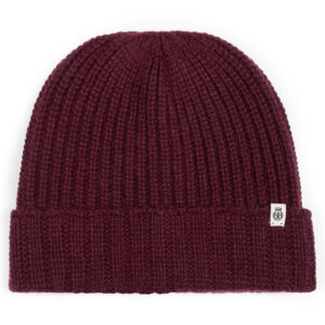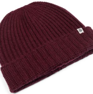 Vācu zīmola Roeckl mīksta un silta rievota adījuma cepure ar atloku no 100% kašmira dzijas bordo krāsā. Papildināta ar kontrastējošu zīmola logotipa uzšuvi.