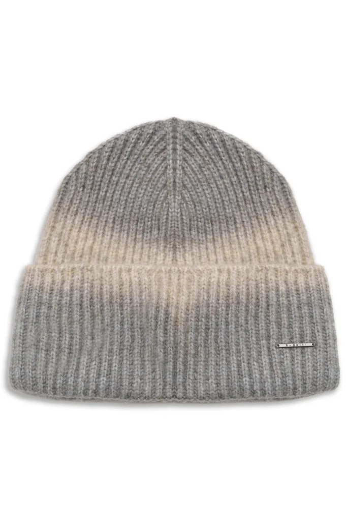 Vācu modes zīmola Bugatti silta un bieza rievota adījuma cepure pelēkā krāsu pārejā. Papildināta ar smalku zīmola logotipa akcentu uz atloka.