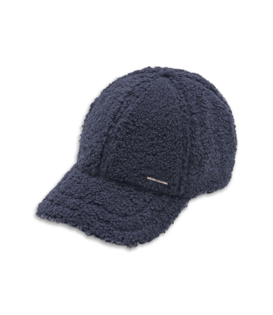 Vācu modes zīmola Bugatti sieviešu beisbola stila cepure tumši zilā krāsā. Izgatavota no vilnas maisījuma materiāla ar mīkstu Teddy struktūru. Papildināta ar regulējama platuma sprādzi un smalku zīmola logotipa metāla akcentu sānā.