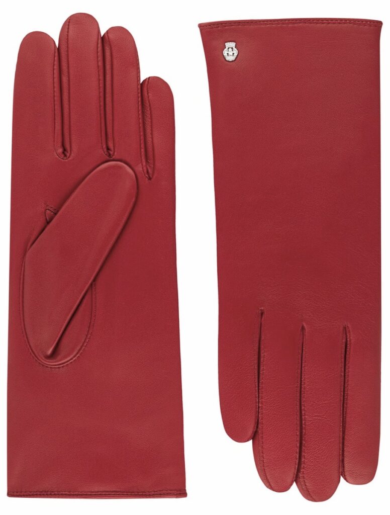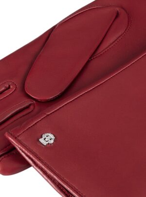 Vācu zīmola Roeckl sarkani sieviešu cimdi ar siltu vilnas un kašmira oderi. Izgatavoti no gludas augstākās kvalitātes dabīgās ādas. Papildināti ar smalku zīmola logotipa akcentu.