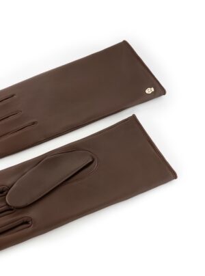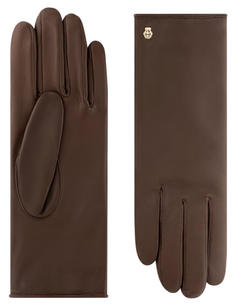 Vācu zīmola Roeckl sieviešu cimdi šokolādes brūnā tonī ar siltu vilnas un kašmira oderi. Izgatavoti no gludas augstākās kvalitātes dabīgās ādas. Papildināti ar smalku zīmola logotipa akcentu.