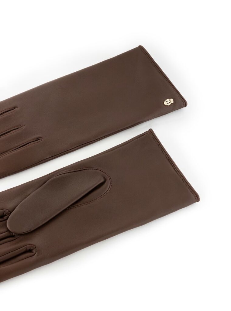 Šokolādes brūni ādas cimdi ar vilnas un kašmira oderi