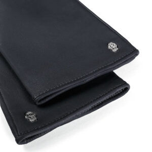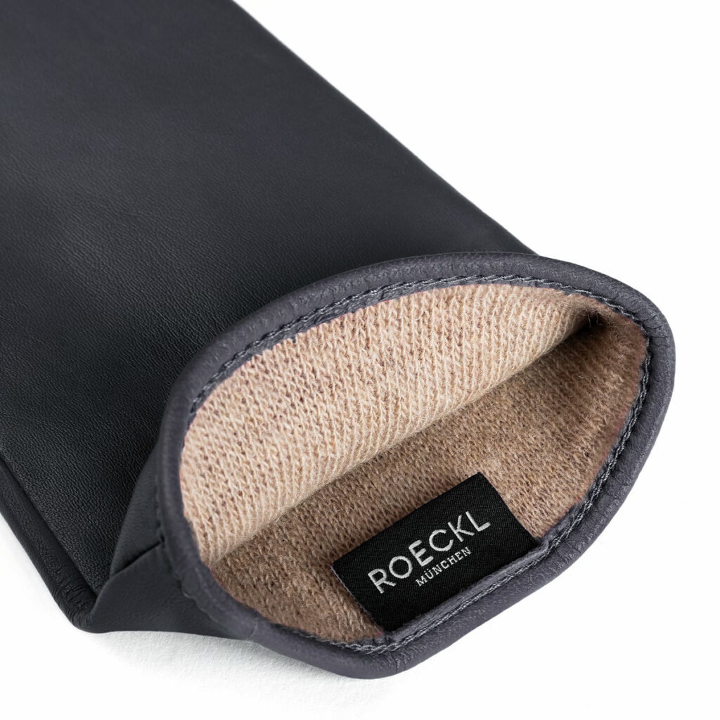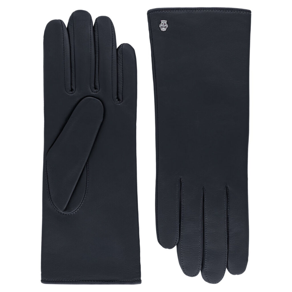Vācu zīmola Roeckl tumši zili sieviešu cimdi ar siltu vilnas un kašmira oderi. Izgatavoti no gludas augstākās kvalitātes dabīgās ādas. Papildināti ar smalku zīmola logotipa akcentu.