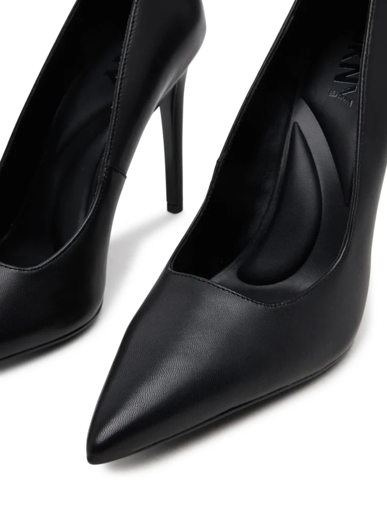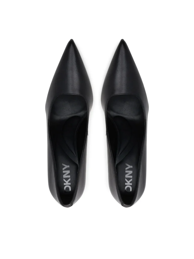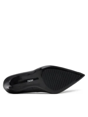 ASV modes zīmola DKNY elegantas un izsmalcinātas sieviešu augstpapēžu kurpes melnā krāsā. Virspusē izgatavotas no augstākās kvalitātes dabīgās ādas. Papildinātas ar smailiem purngaliem un 10 cm augstiem papēžiem.