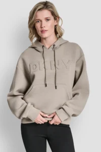 ASV modes zīmola DKNY komfortablas un stilīgas plata piegriezuma sieviešu bikses tumši zilā krāsā. Izgatavotas no mīksta viskozes maisījuma materiāla smalki rievota adījuma rakstā. Papildinātas ar uzšūtām cargo stila kabatām un augstu, elastīgu jostasvietu.