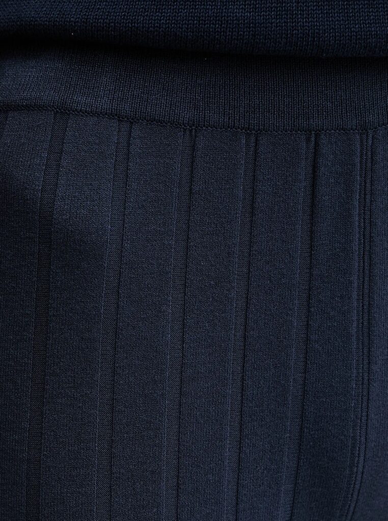 Tumši zilas bikses ar vertikāla adījuma struktūru