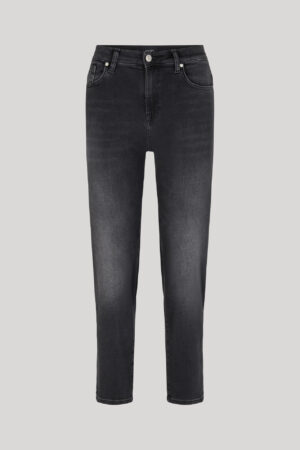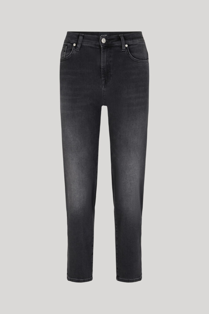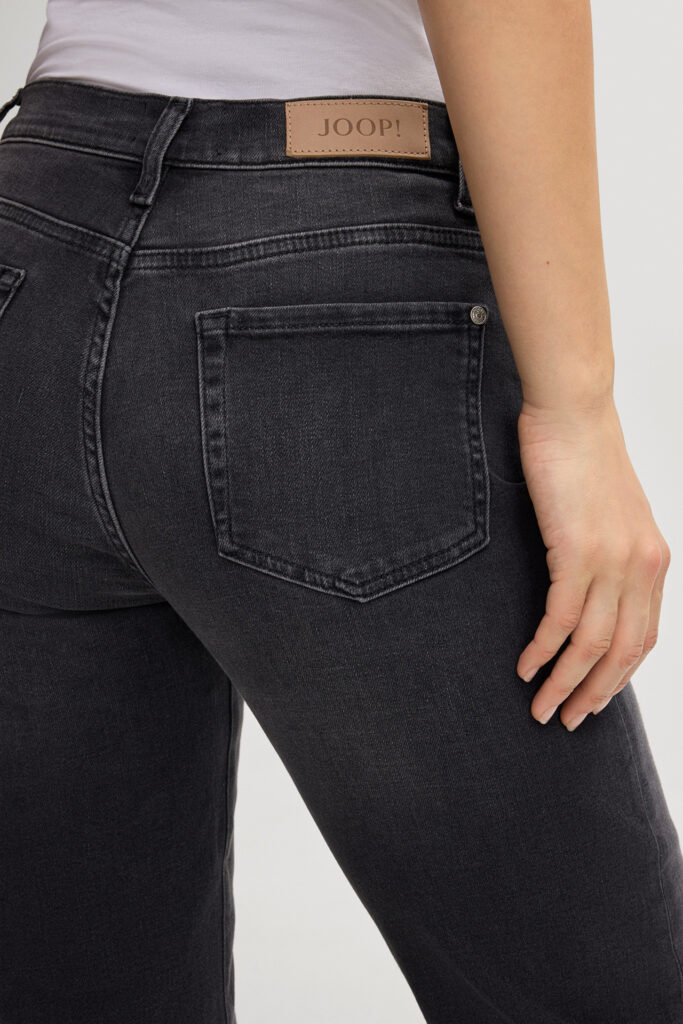 Vācu modes zīmola Joop! pakāpeniski sašaurināti saīsināta garuma džinsi tumši pelēkā krāsā ar neliela nobružājuma efektu. Izgatavoti no elastīga kokvilnas materiāla. Papildināti ar zīmola logotipa akcentiem un detaļām.