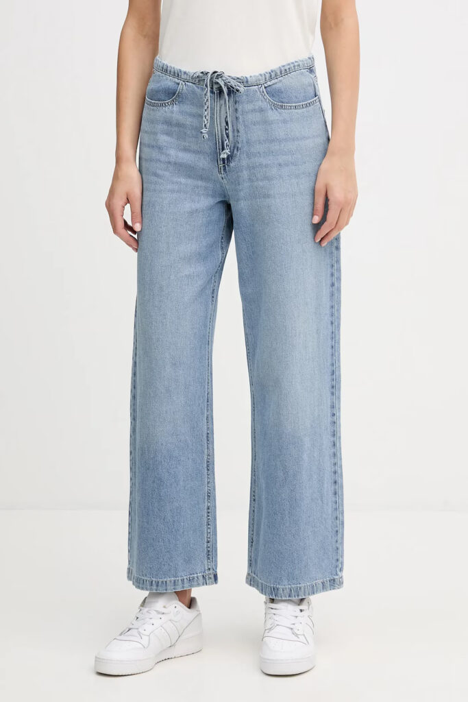 Kokvilnas džinsu bikses ar sasienamu jostasvietu