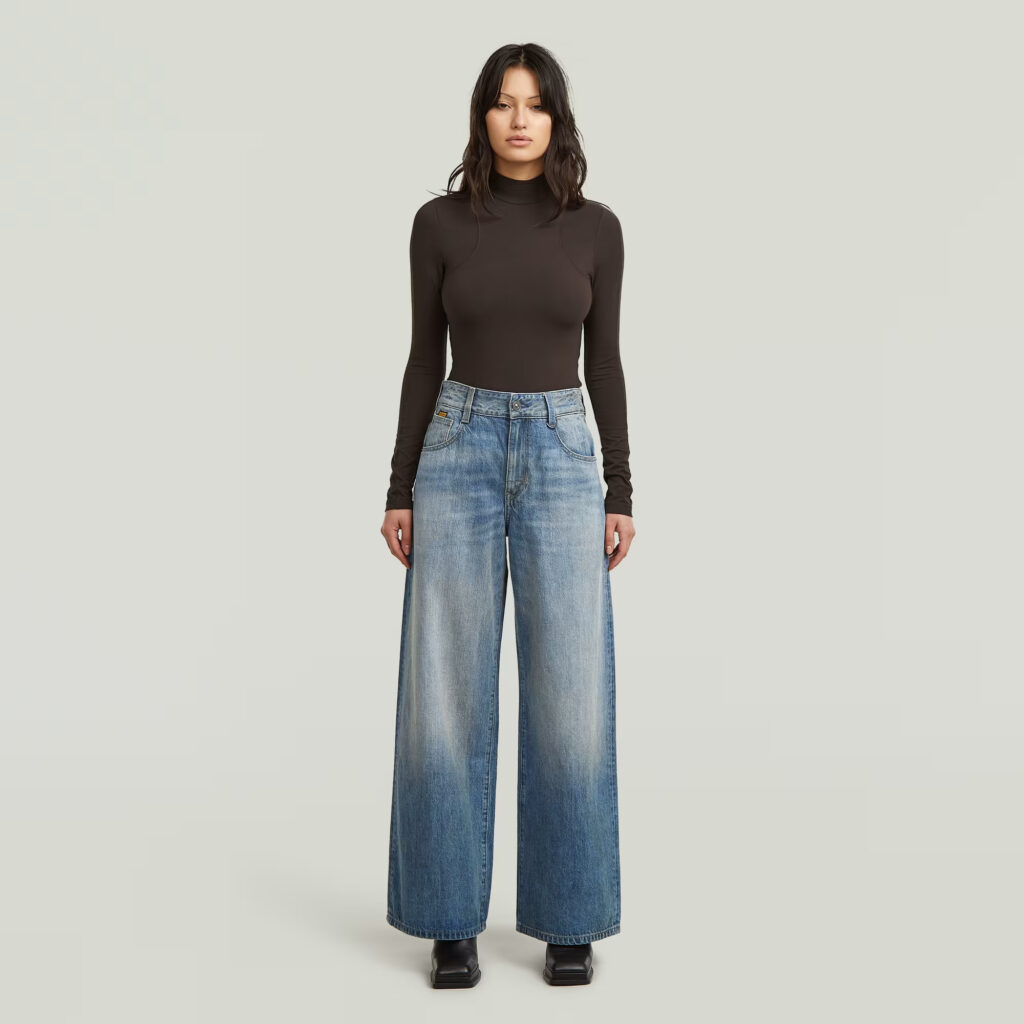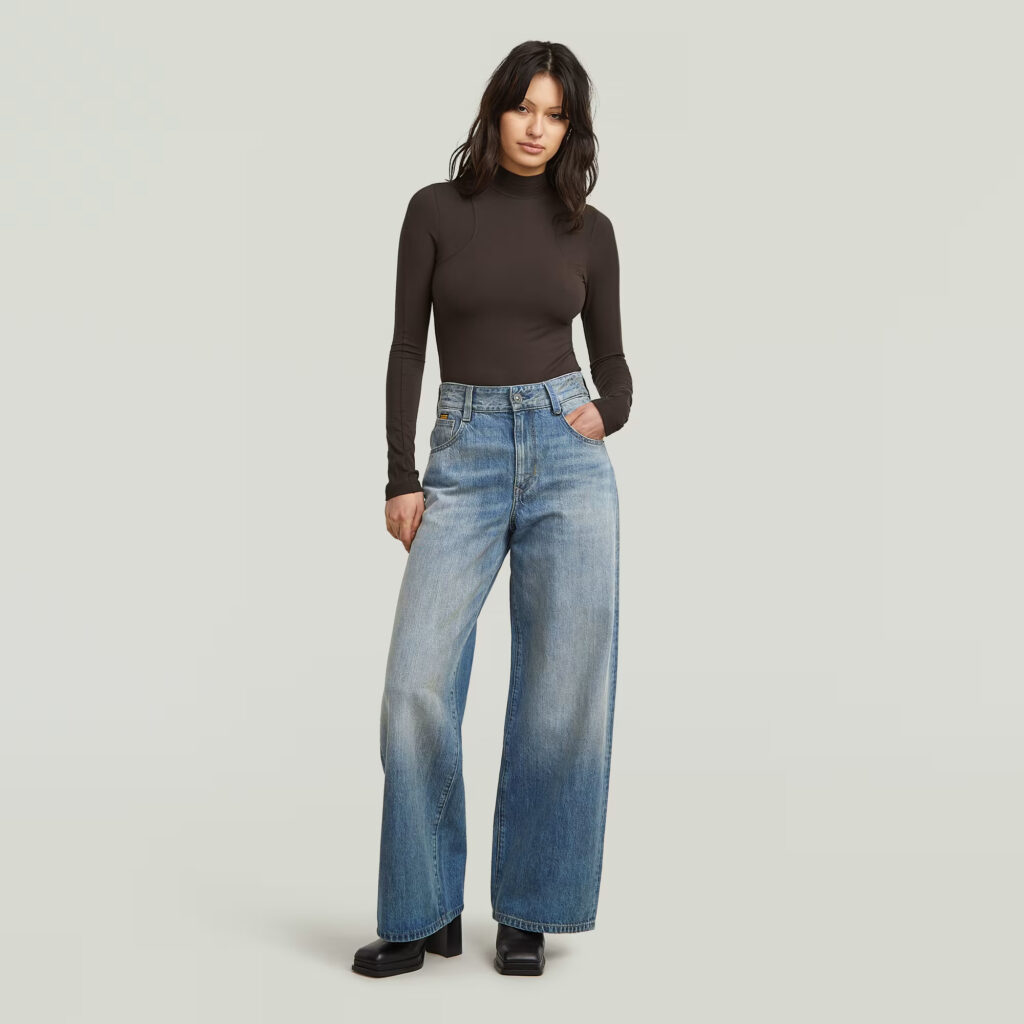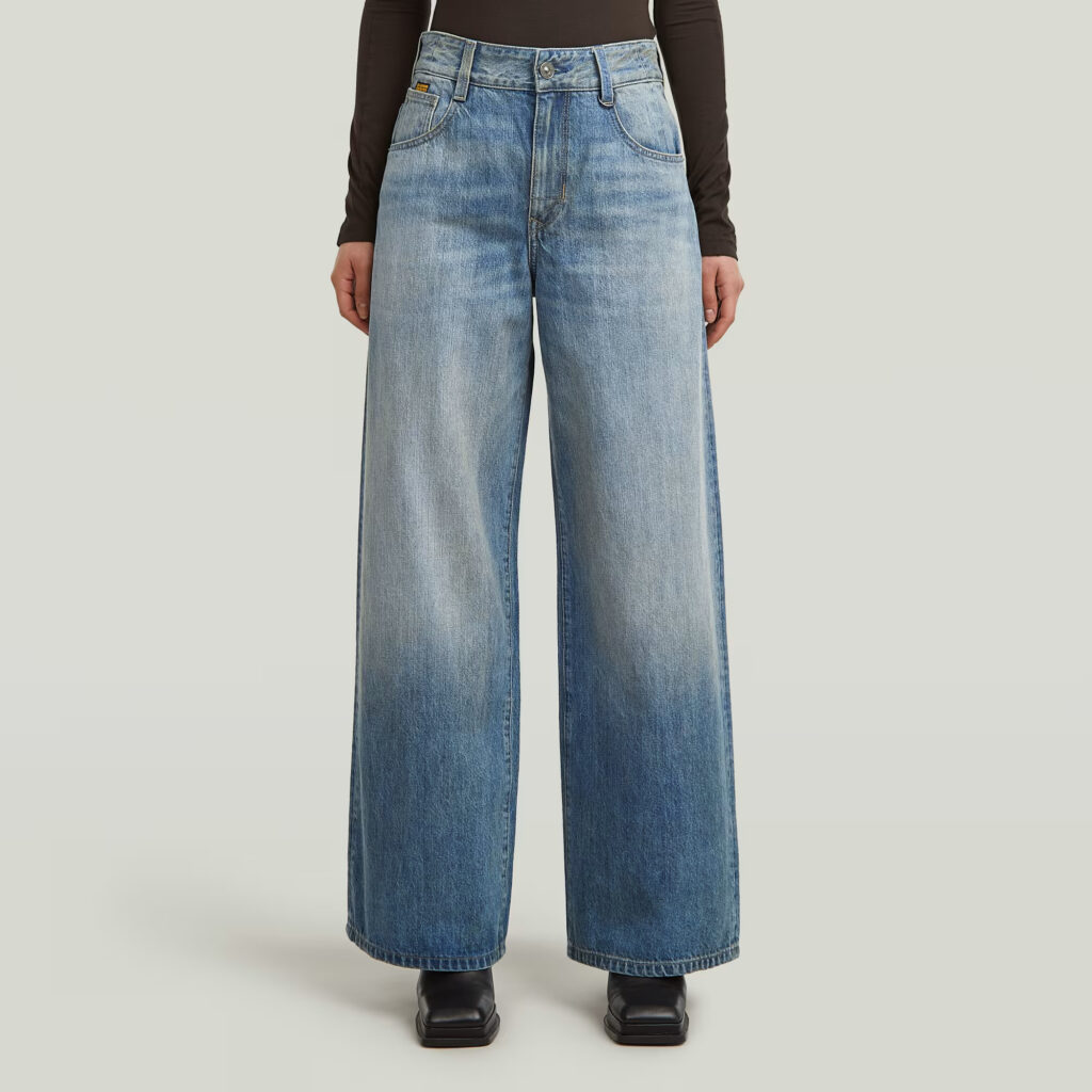 Nīderlandes zīmola G-Star Raw stilīgi plata piegriezums sieviešu Skater džini zilā krāsā ar nobružājuma un nodiluma efektu. Izgatavoti no atjaunojamas un pārstrādātas kokvilnas. Papildināti ar augstu jostasvietu un dziļām kabatām, kā arī zīmola logotipa detaļām.