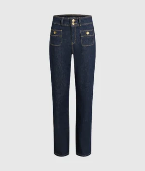 Taisna piegriezuma džinsi ar kontrastējošām detaļām