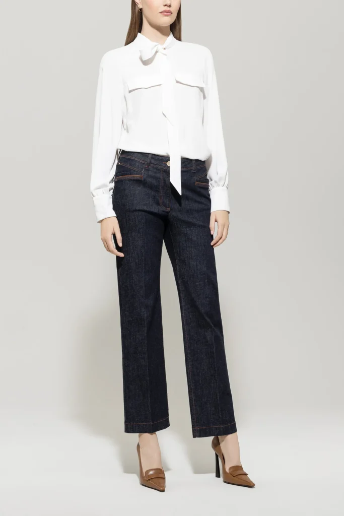 Taisna pieriezuma džinsi ar kontrastējošiem akcentiem