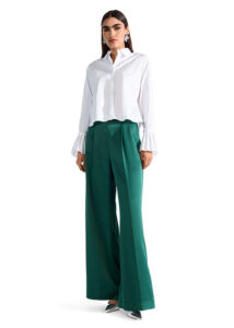 Vācu premium klases apģērbu zīmola Luisa Cerano baltas plata piegriezuma bikses sievietēm ar dekoratīvām ielocēm pie jostasvietas.