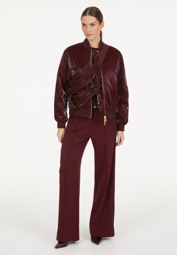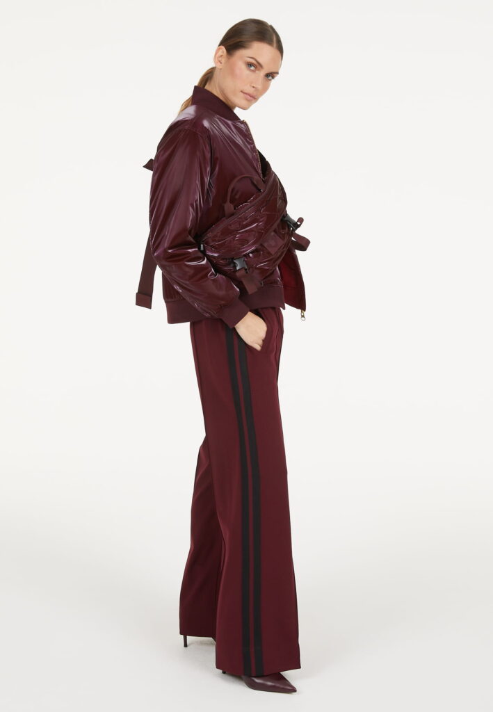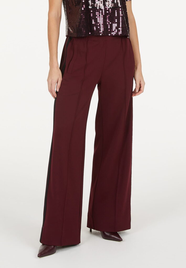 Bordo krāsas bikses ar kontrastējošām sānu svītrām