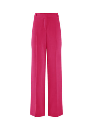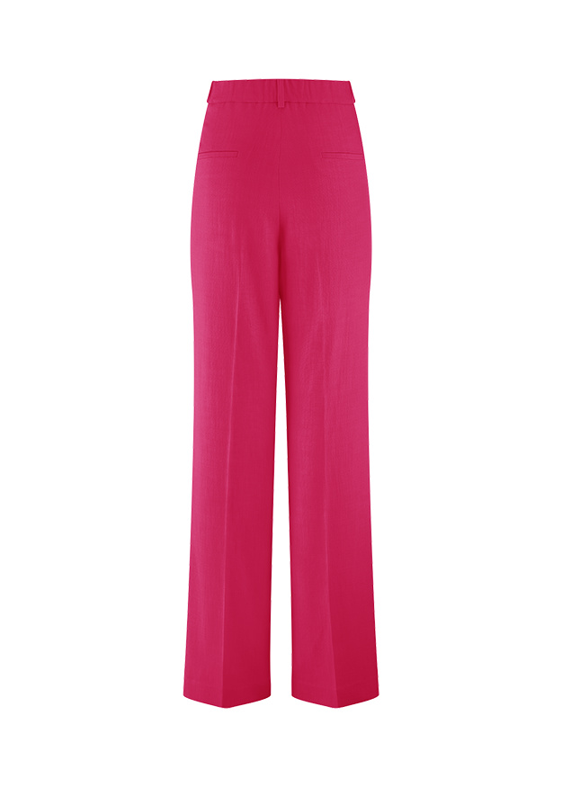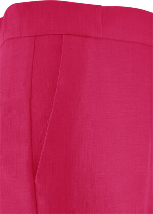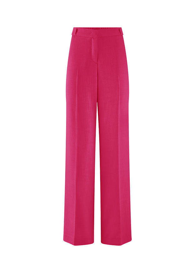 Vācu modes zīmola Riani brīva piegriezuma sieviešu bikses spilgti aveņsārtā tonī. Izgatavotas no strukturēta un komfortabla viskozes maisījuma materiāla. Papildinātas ar viegli elastīgu jostasvietu mugurpusē.