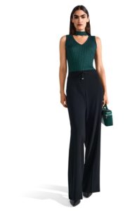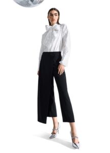 Elegantās un ērtās platā piegriezuma linu bikses ar atlokiem iederēsies gan ikdienas, gan svētku garderobē kopā ar blūzēm, topiem vai T-krekliem.