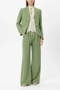 Vācu modes zīmola Riani platas, taisna piegriezuma sieviešu bikses baltā krāsā.
