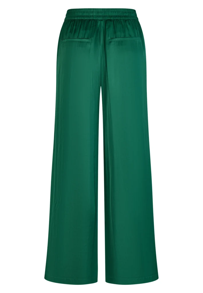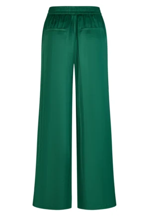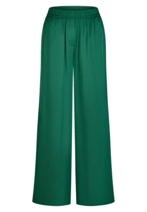 Vācu modes zīmola Marc Aurel koši zaļas pidžamas stila sieviešu bikses ar elastīgu jostasvietu. Izgatavotas no plūstoša viskozes maisījuma materiāla ar satīna spīdumu. Papildinātas ar iešūtām sānu kabatām.