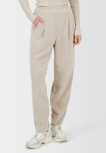 Vācu modes zīmola Marc Aurel sportiskā stila sieviešu bikses ar cargo dizaina detaļām. Izgatavotas no viegla un plūstoša viskozes materiāla ar sudrabainu mirdzumu. Papildinātas ar uzšūtām augšstilbu kabatām un elastīgu, sasienamu jostu, kā arī ar smalku logo akcentu pie kabatas.