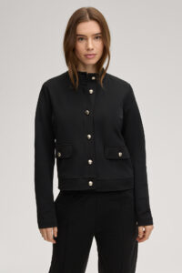 Vācu modes zīmola Joop! melnas sieviešu sportiskā stila bikses ar elastīgu jostasvietu. Izgatavotas no viegli elastīga kokvilnas maisījuma materiāla. Akcentētas ar vertikālām nošuvēm un smalku logo emblēmu pie sānu kabatas.