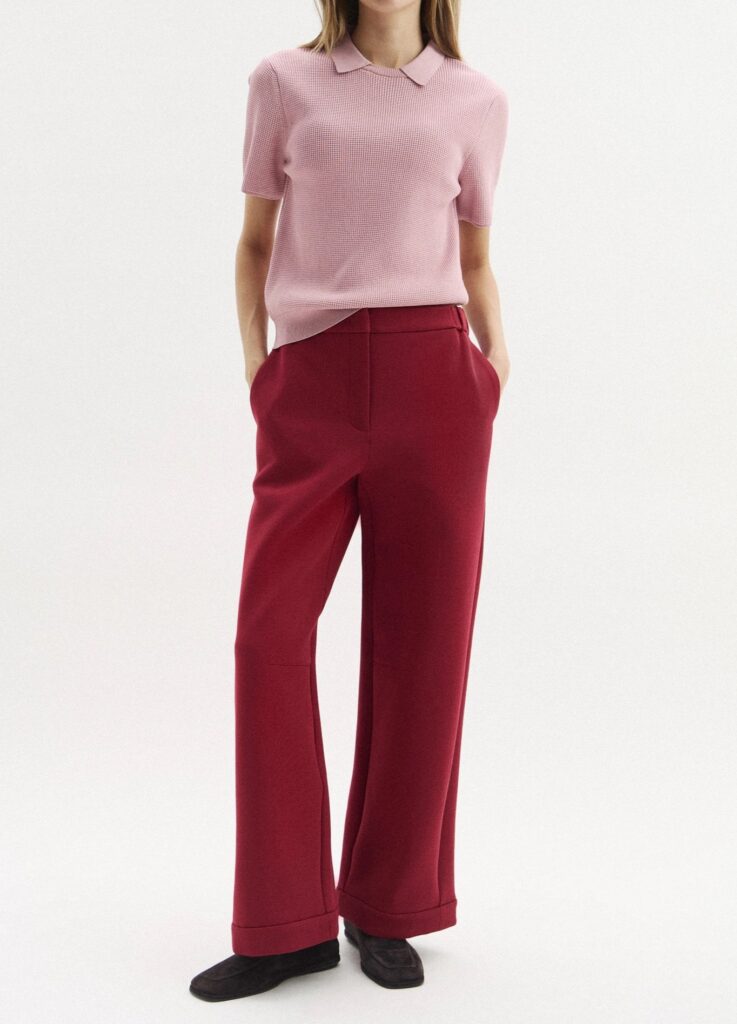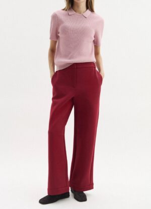 Tumši sarkanas bikses ar daļēji elastīgu jostu