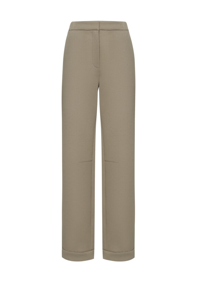 Zaļganpelēkas bikses ar daļēji elastīgu jostu