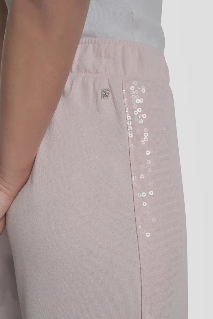 Rozā sportiskā stila bikses ar fliteru apdari