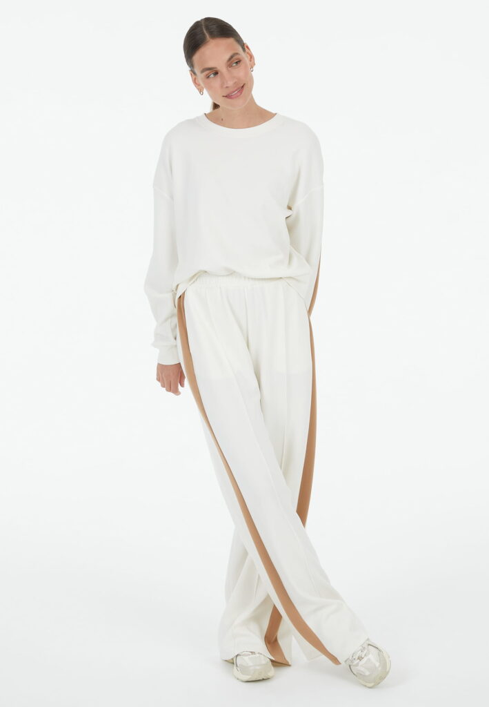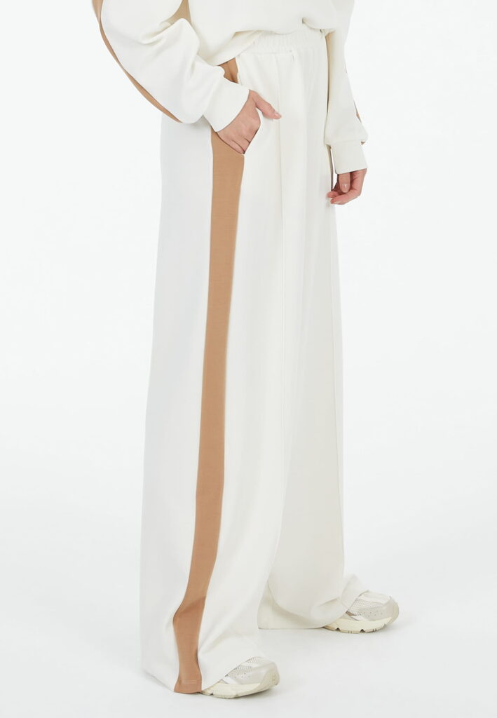 Krēmbaltas sportiskā stila bikses ar svītru akcentu