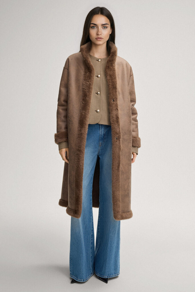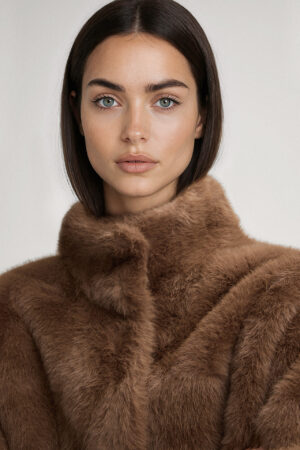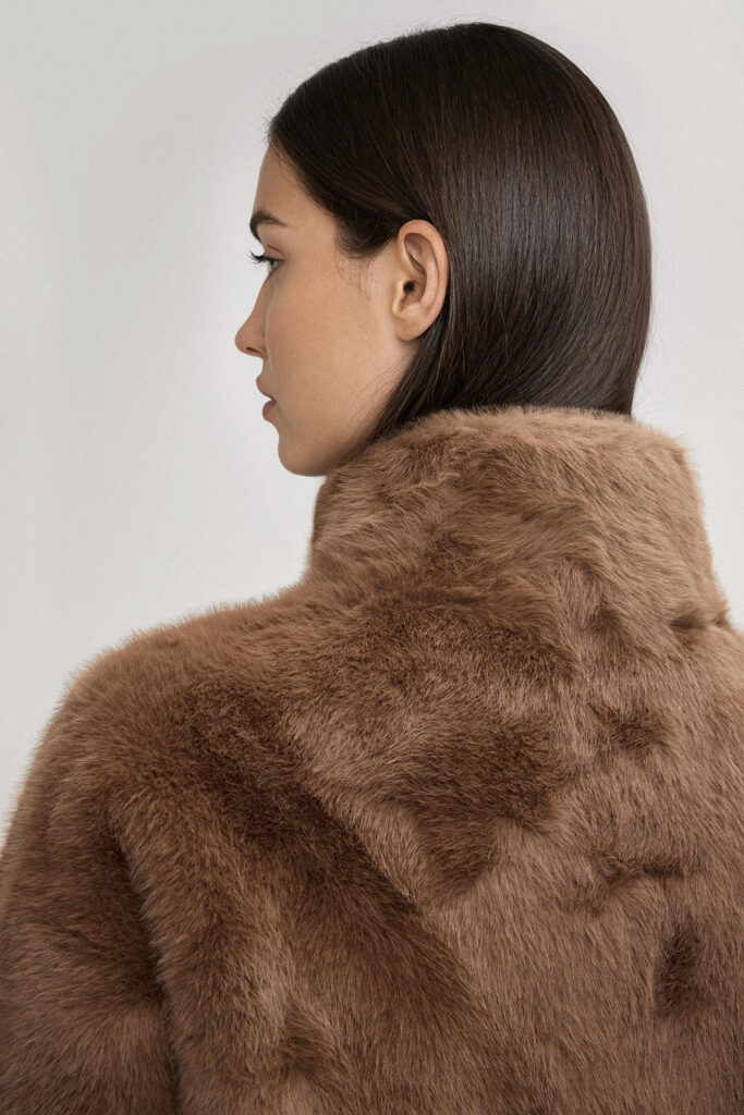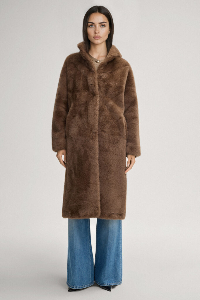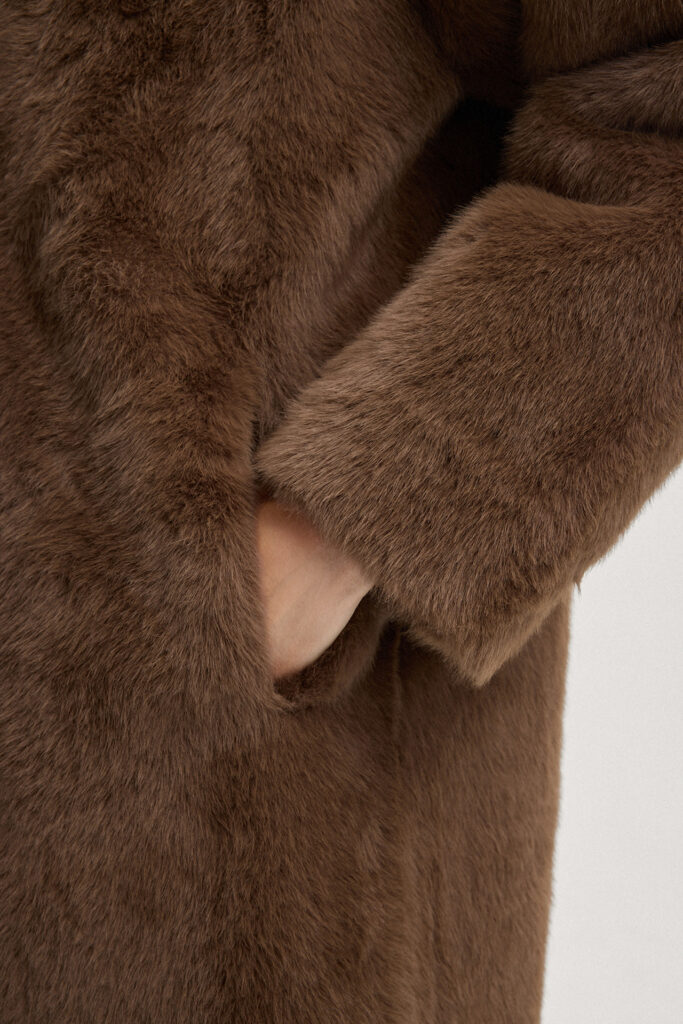 Abpusēji nēsājams mākslīgās kažokādas mētelis