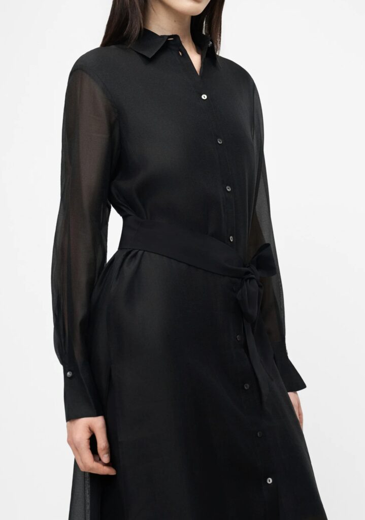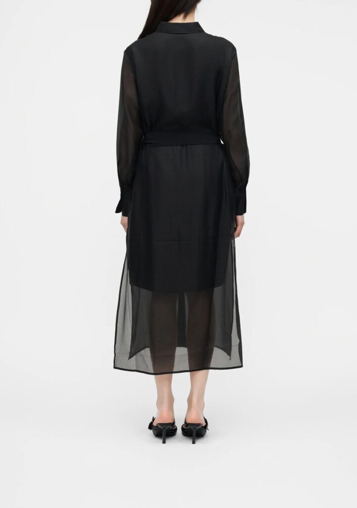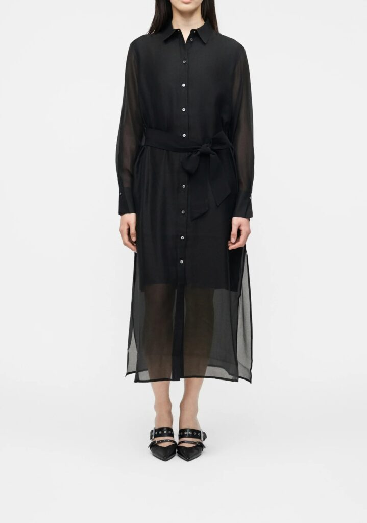 Daļēji caurspīdīga kreklkleita ar sasienamu jostu