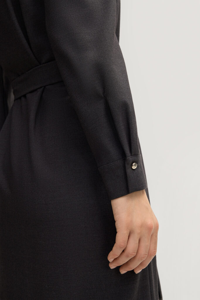 - Kleitas krāsa: tumši pelēka