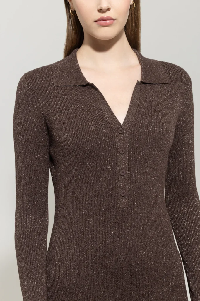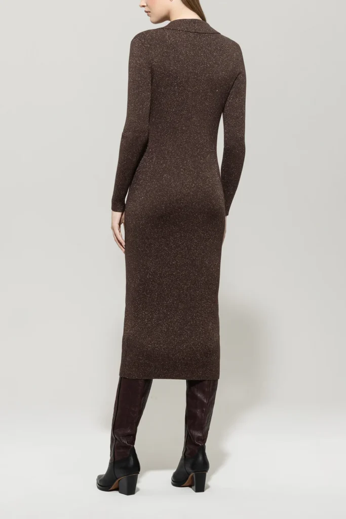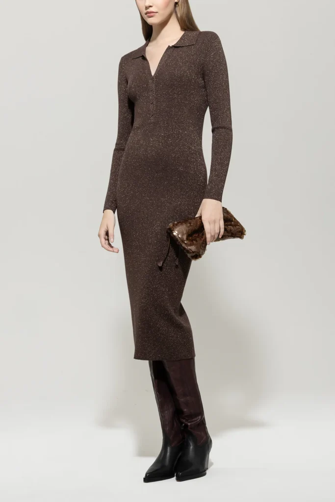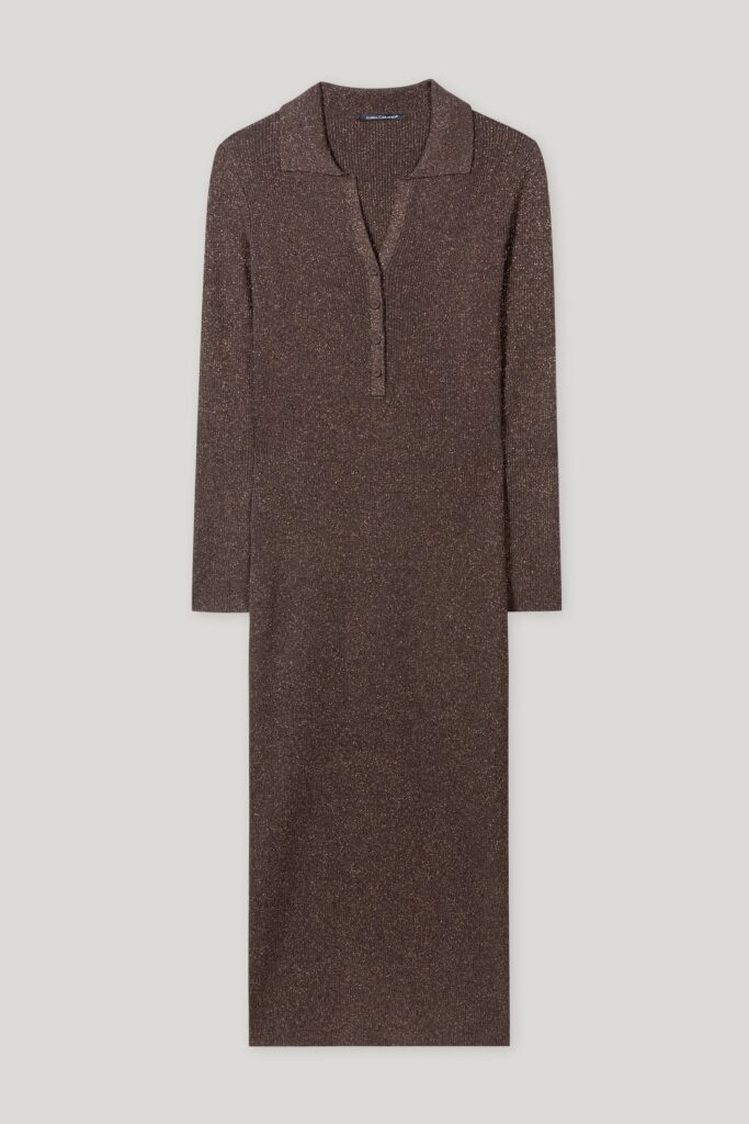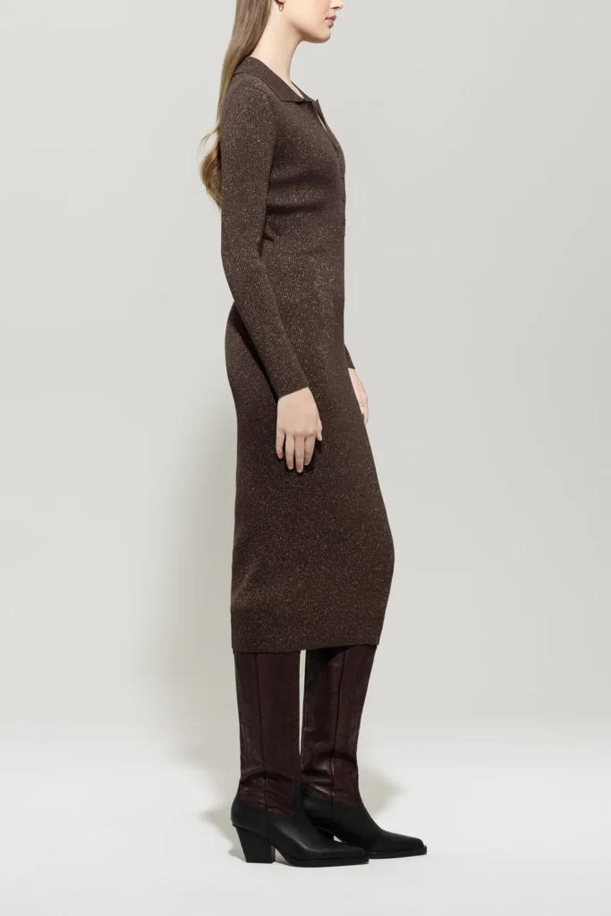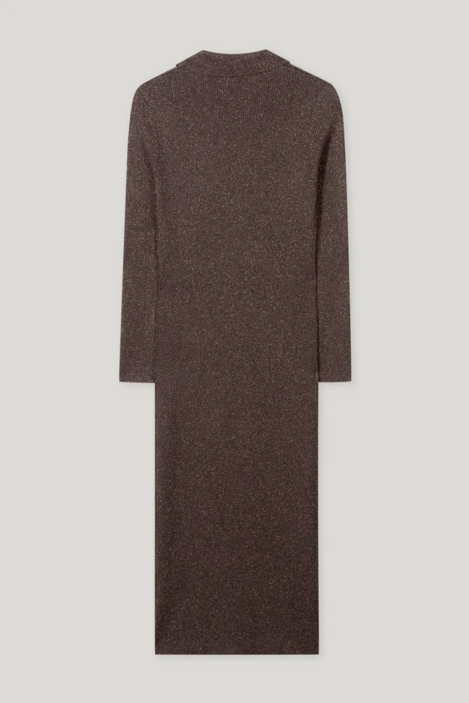 Rievota adījuma kleita ar mirdzumu, brūna
