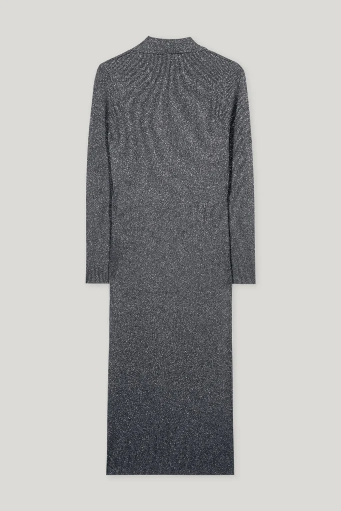 Rievota adījuma kleita ar mirdzumu, pelēka