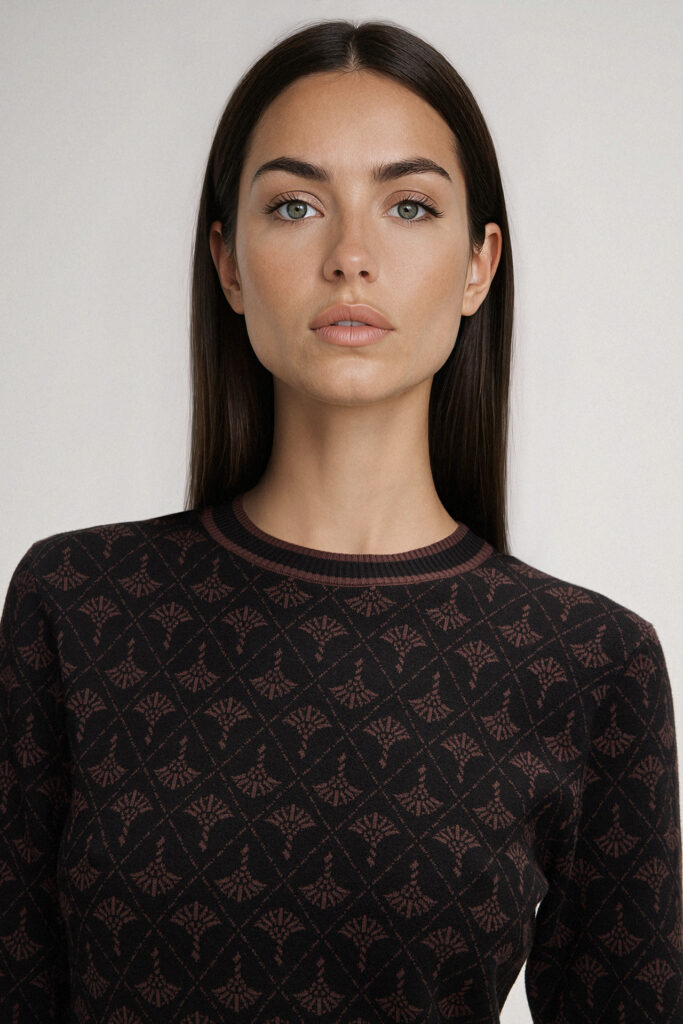 - Apaļš kakla izgriezums ar smalki rievotu apdari