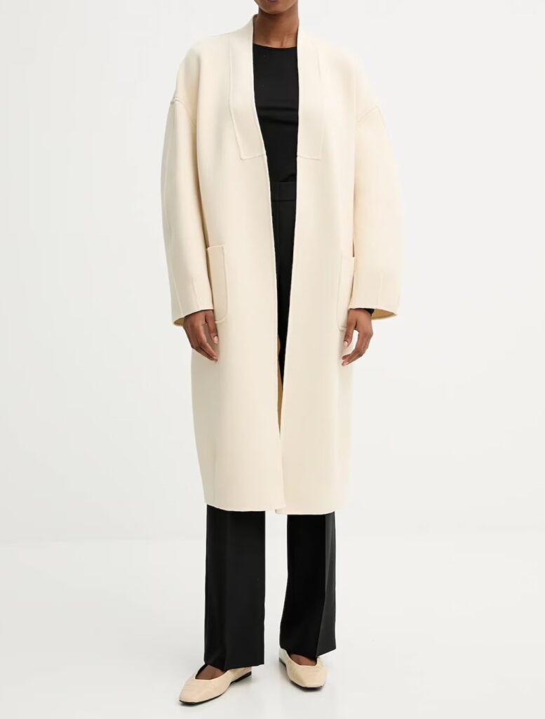 - Mēteļa krāsa: gaiši bēša