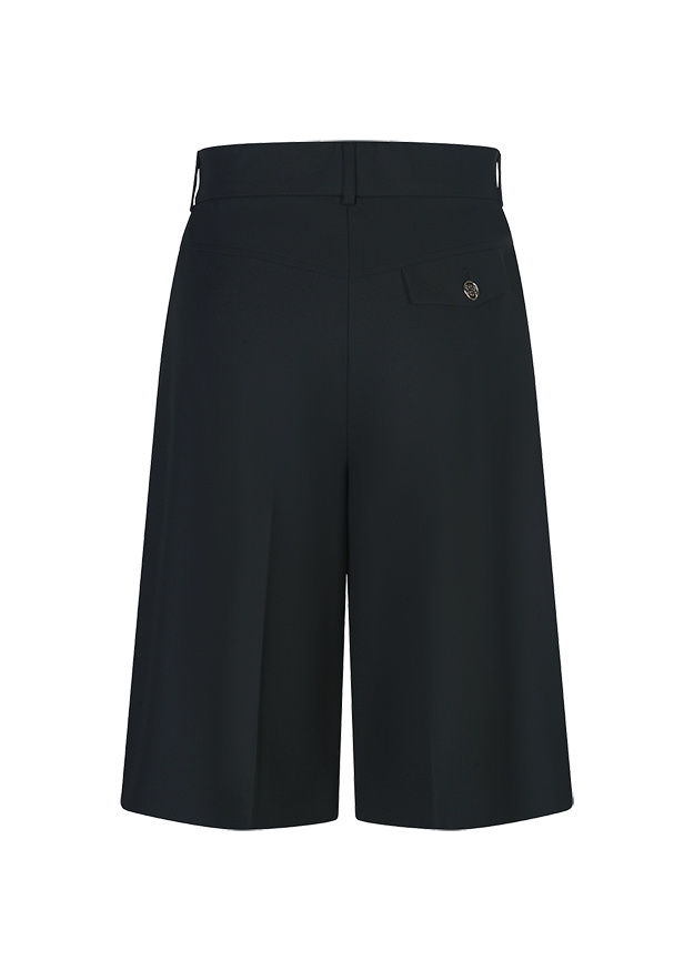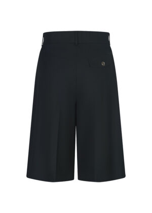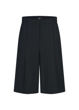 Vācu modes zīmola Riani melni eleganta silueta Bermudu šorti sievietēm. Izgatavoti no viegla viskozes maisījuma kostīmu auduma. Papildināti ar ielocēm un smalku zelta krāsas zīmola akcentu mugurpusē.