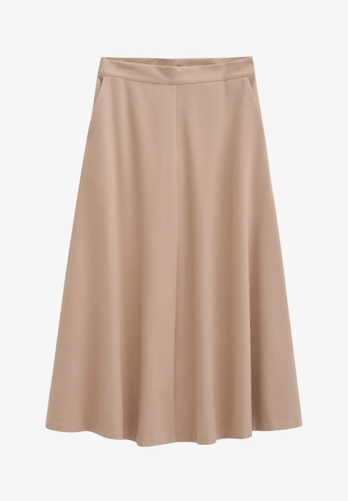 Vācu modes zīmola Bugatti gari sieviešu A silueta svārki bēšā krāsā. Izgatavoti no mīksta, blīva un plūstoša viskozes maisījuma materiāla. Papildināti ar iešūtām sānu kabatām.