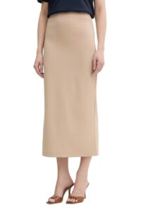 Vācu modes zīmola Riani pieguļoši midi garuma sieviešu svārki ar mirdzošiem fliteriem tumšā, violeti rozā fuksijas tonī. Papildināti ar elastīgu zīmola logotipa apdrukas jostu un šķēlumu mugurpusē.