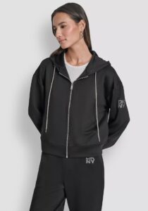 Vācu luksusa zīmola Karl Lagerfeld ekstravagants brīva piegriezuma sieviešu krekls ar spiedpogu aizdari un kuplām kimono stila piedurknēm. Izgatavots no 100% organiskās kokvilnas poplīna. Akcentēts ar metāliskiem logo burtiem pie aizdares un smalku zīmola paraksta vientoņa izšuvumu uz aproces.