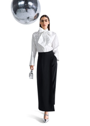 Blūze ar mirdzošu rakstu un sasienamu apkakli