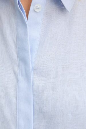 Gaiši zila plata piegriezuma linu kreklblūze