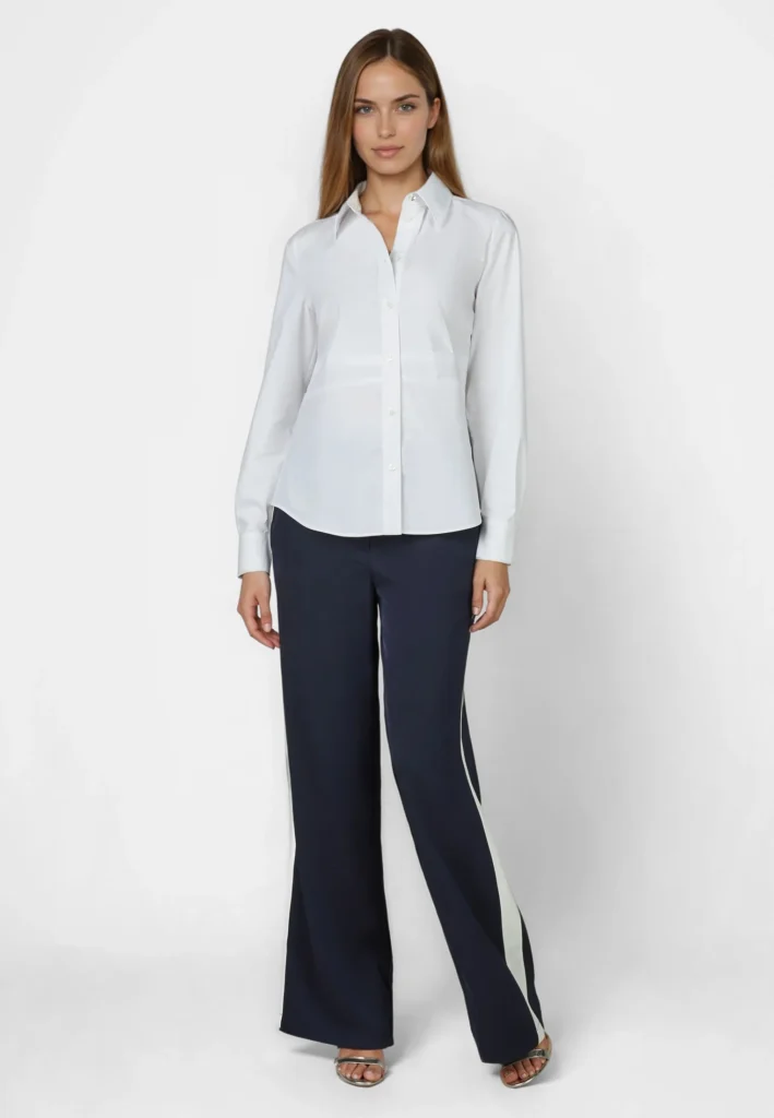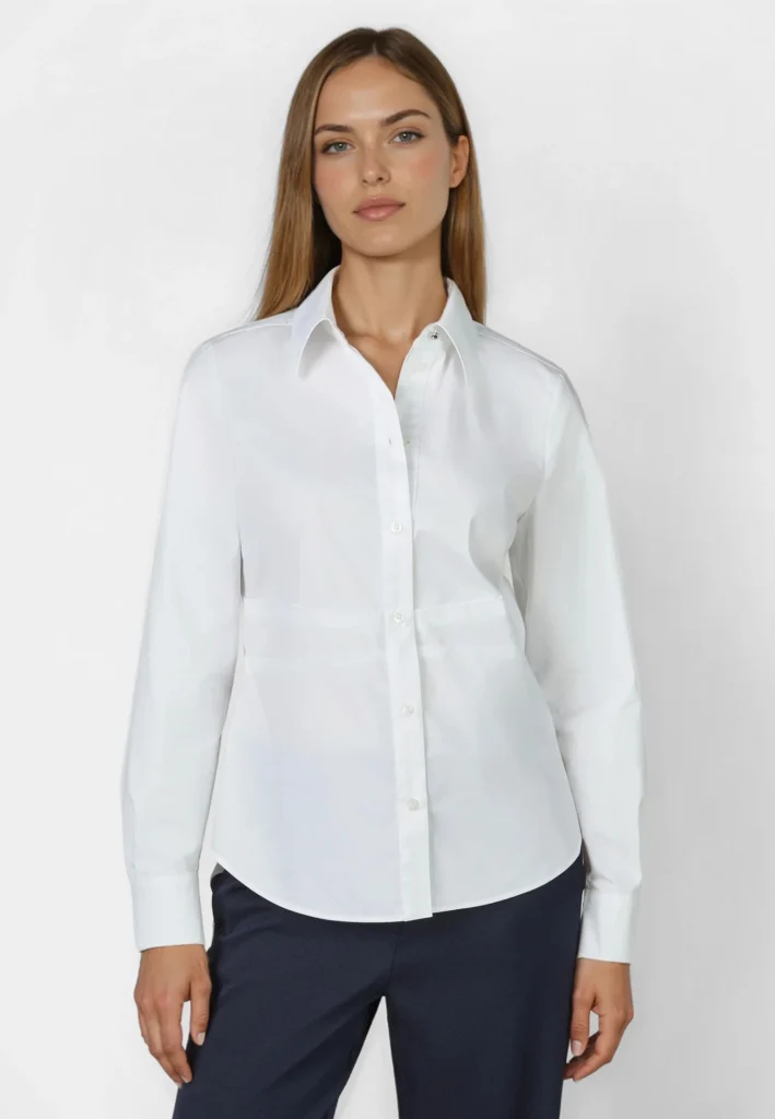 Pieguļošs poplīna krekls ar ielocēm jostasvietā