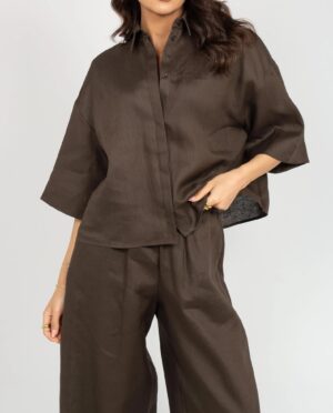 Tumši brūna plata piegriezuma linu kreklblūze