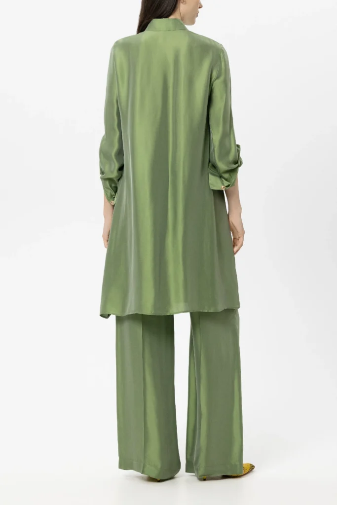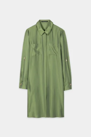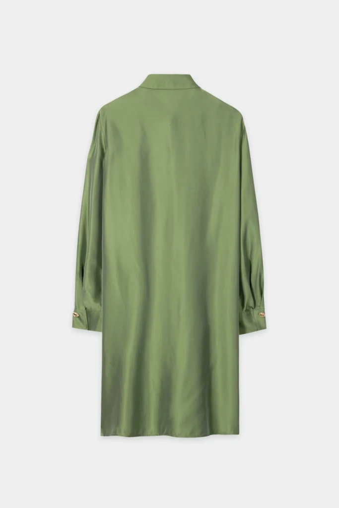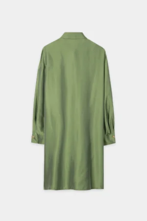Zaļa zīda un viskozes kreklkleita ar slēptu aizdari