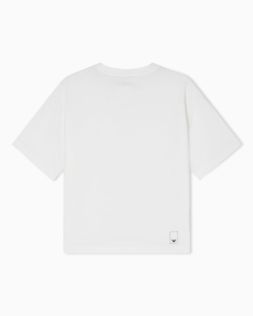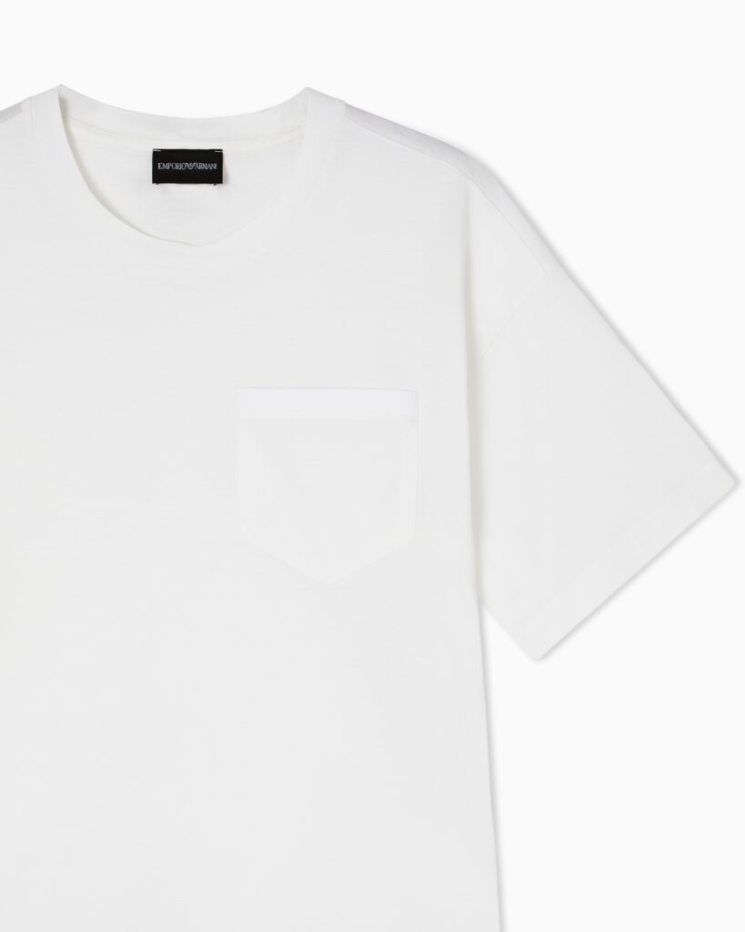 Itāļu luksusa zīmola Emporio Armani balts sieviešu T-krekls no Travel Essential kolekcijas. Izgatavots no augstākās kvalitātes kokvilnas materiāla ar zīdainu struktūru. Papildināts ar uzšūtu krūšu kabatiņu. Akcentēts ar kontrastējošu zīmola emblēmu mugurpusē.