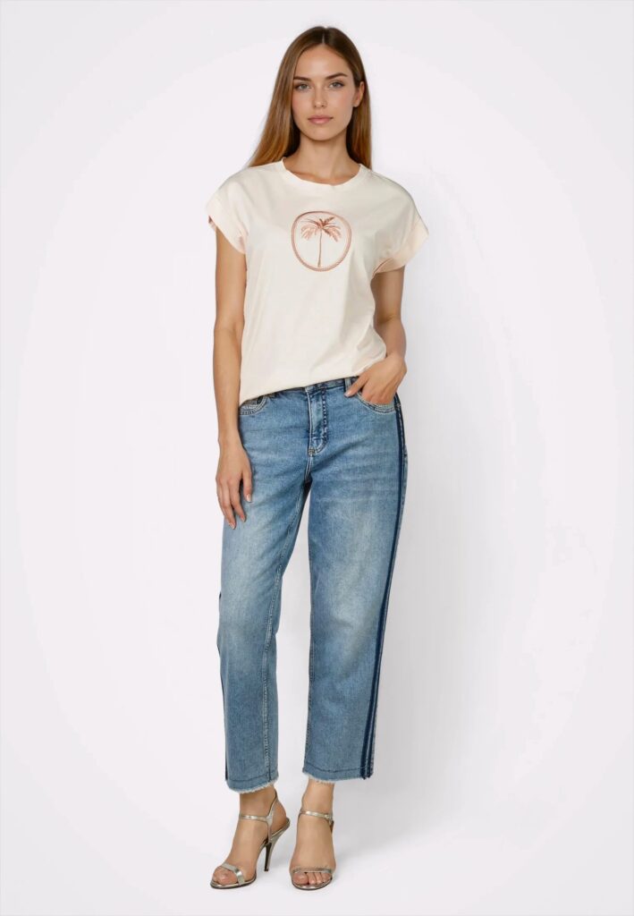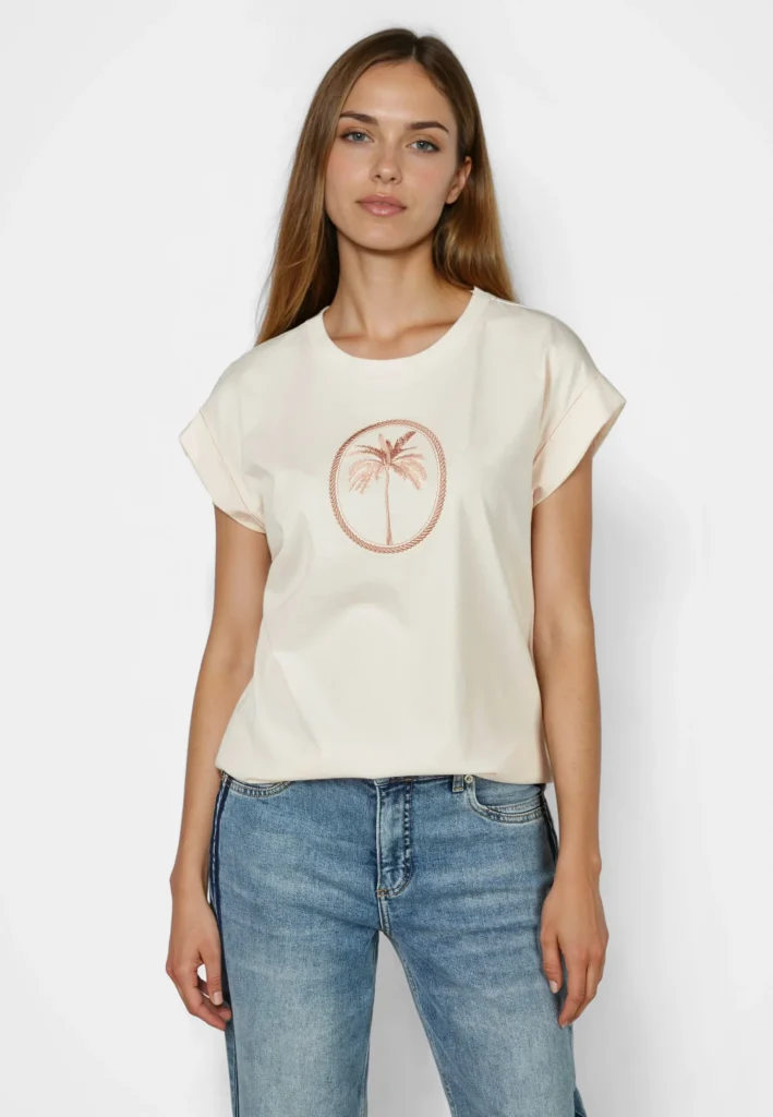 Kokvilnas T-krekls ar palmas motīva izšuvumu
