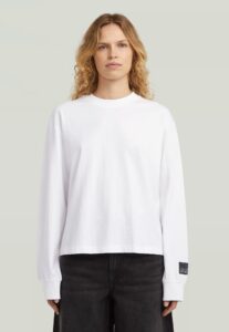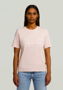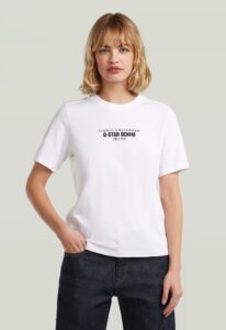 Nīderlandes zīmola G-Star Raw sieviešu tops ar kontrastējošiem kaligrāfijas stila logo burtiem sarkanā krāsā.