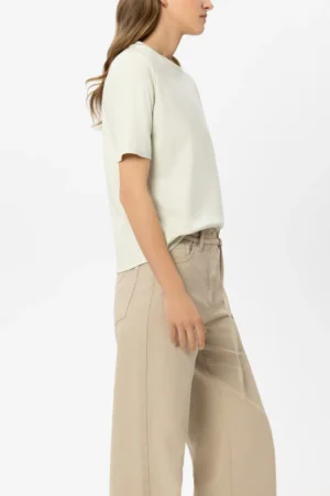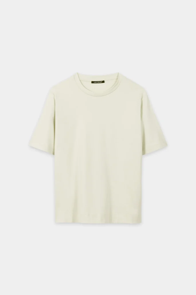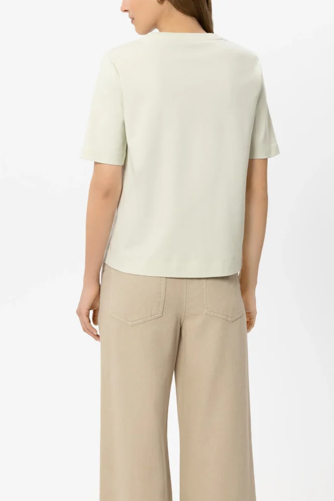 Vācu premium klases apģērbu zīmola Luisa Cerano askētiska dizaina T-krekls gaiši dūmakaini zaļā pistāciju tonī no augstākās kvalitātes organiskās kokvilnas.