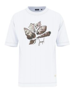 Vācu premium klases apģērbu zīmola Luisa Cerano sieviešu T-krekls bēšā krāsā ar izšūtu uzrakstu brūni dzeltenos toņos. Izgatavots no 100% organiskās kokvilnas.