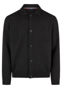 Vācu premium klases apģērbu zīmola Luisa Cerano ekstravaganta sieviešu jaka melnā krāsā. Izgatavota no spuraina tvīda materiāla ar smalkām fliteru detaļām. Papildināta ar zīda satīna apkakles lenti, saīsināta garuma piedurknēm un plānu šifona oderi.